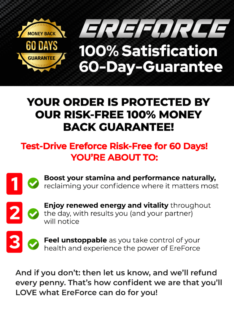 With Ereforce, you can explore a natural and powerful approach to restoring your performance — completely risk-free.
